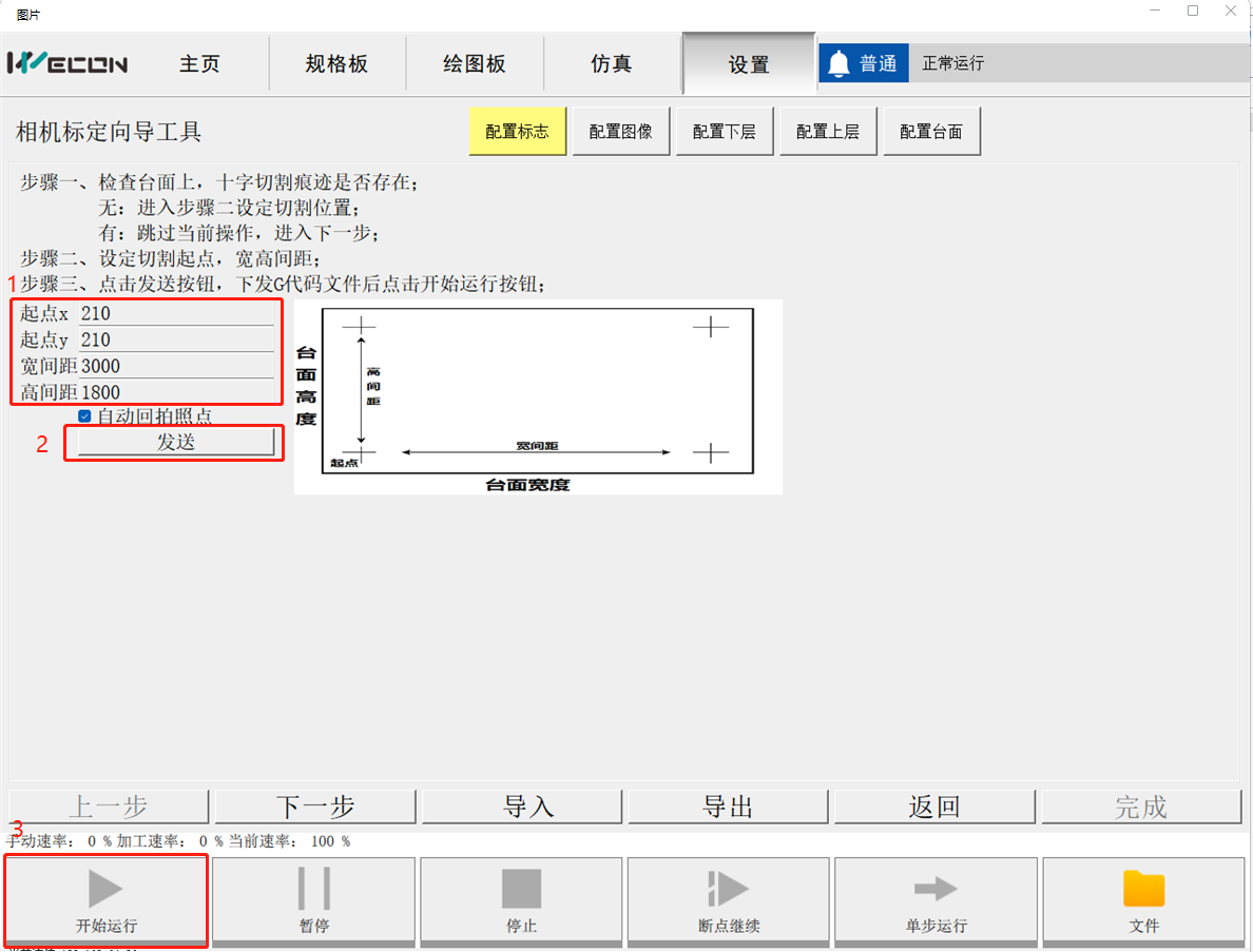 - 设定台面十字标记切割位置,起点x,y,宽度,高度