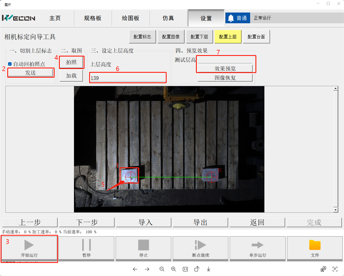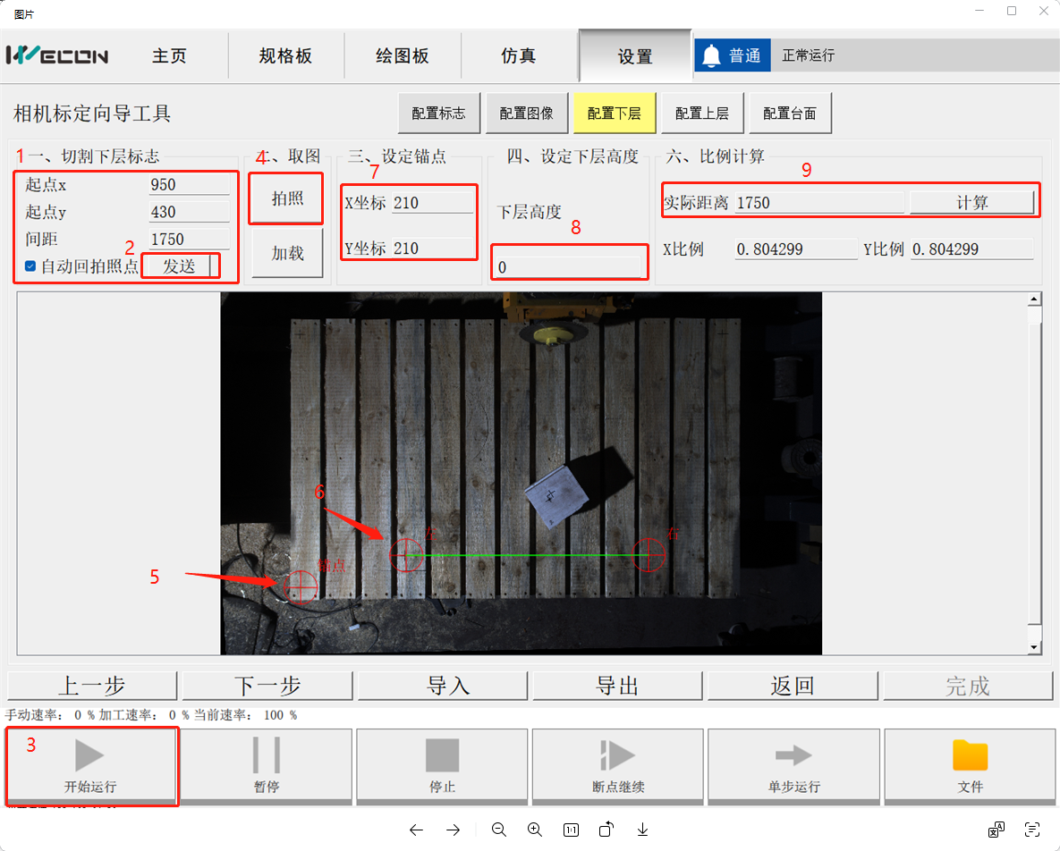 在这一步中,我们需要在加工区域内切割两个已知长度的十字标记,用以标定台面层(最下层)的视觉尺寸。