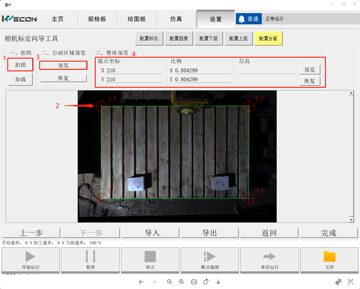 当完成下层以及上层的标定后,我们的图像校正便已经完成。由于视野不同,我们通常需要框选一个加工区域亦或者叫做对图像进行裁剪,以便于我们后续的加工。