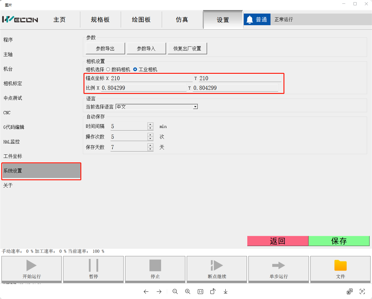 除了在相机标定页调整相机参数外,我们还可以在可以在系统设置进行参数微调,调整锚点坐标,缩放比例。