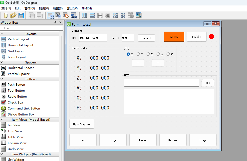 - 完成点动类指令的开发,支持对控制器的点动控制
