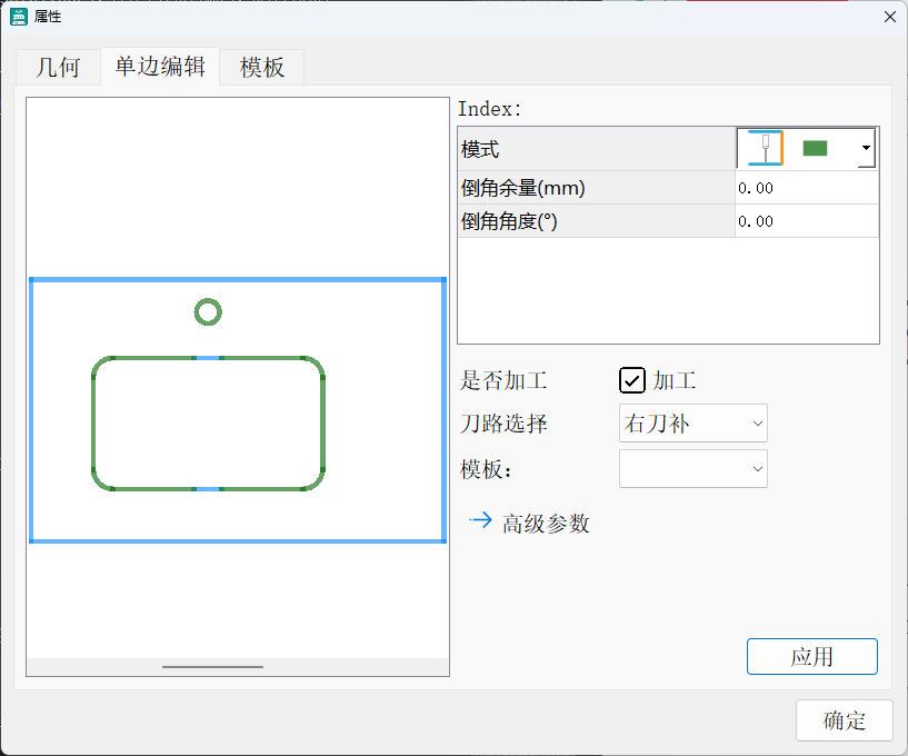 亦或者画出4个封闭的矩形,这样系统会自动做刀补。如果不需要侧边的切割,在单边编辑中,将侧边删除即可。