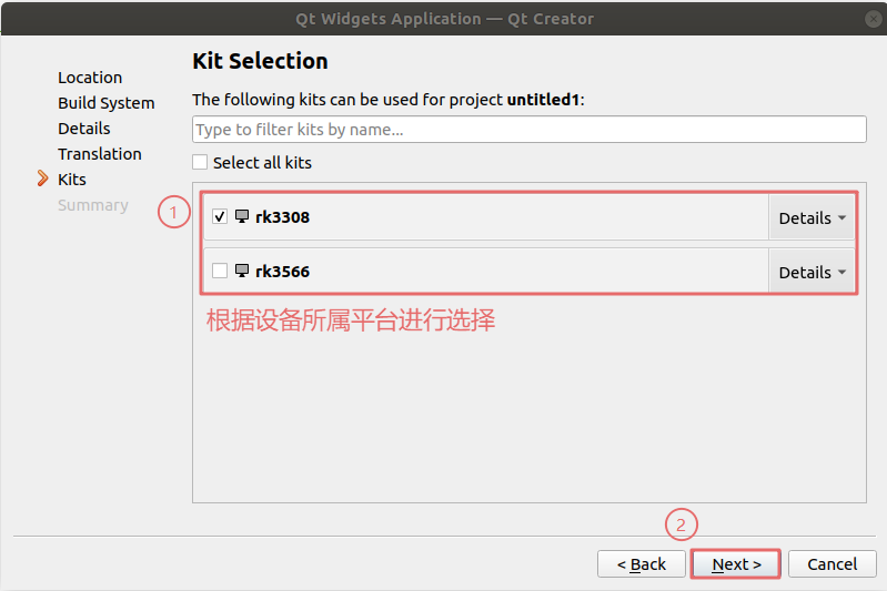 新建工程,选择QT应用程序,设备选择嵌入式设备。