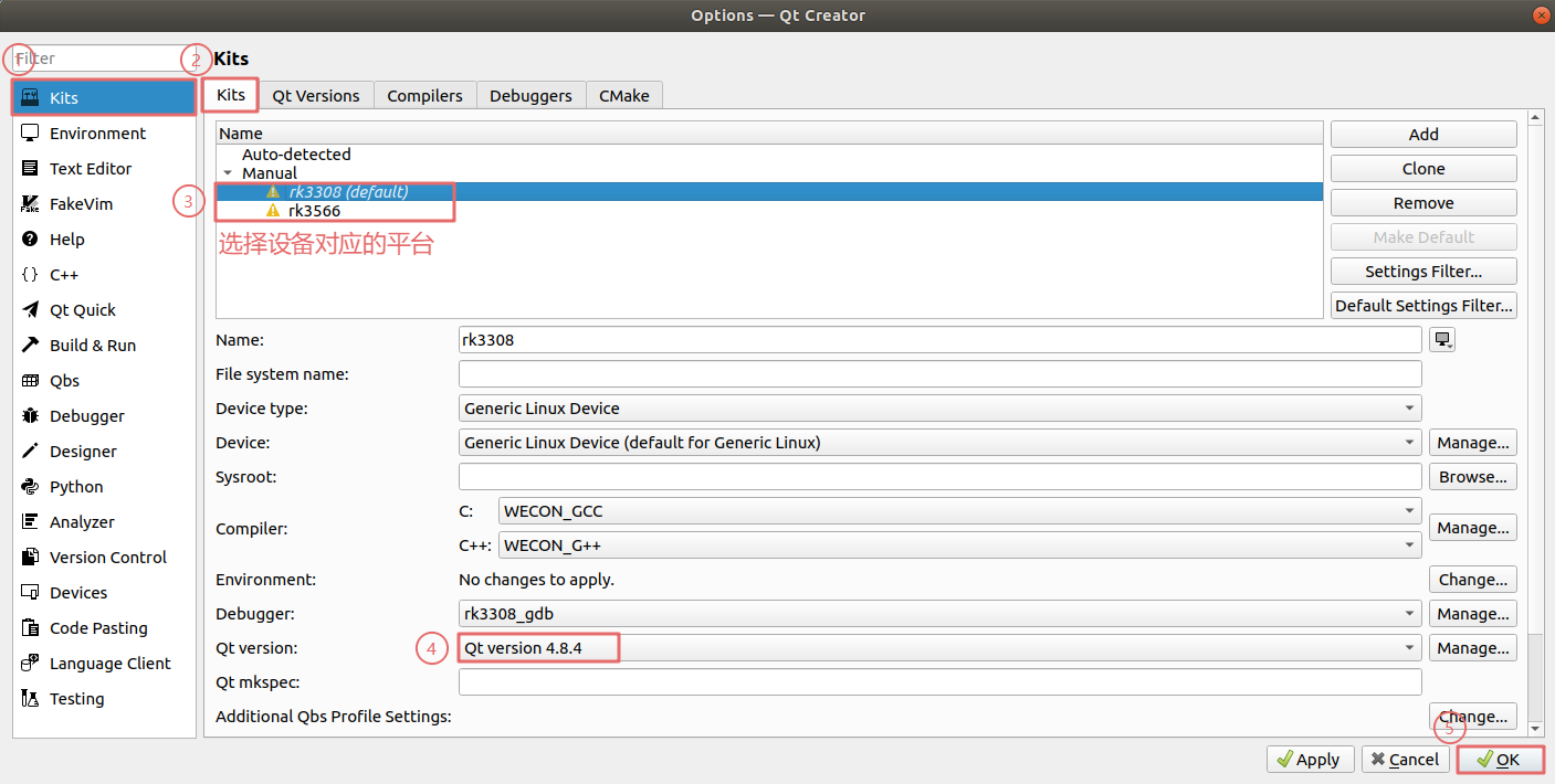 | 2 | 新建工程 | 新建项目,QT应用程序,嵌入式设备 | 创建新项目 |
