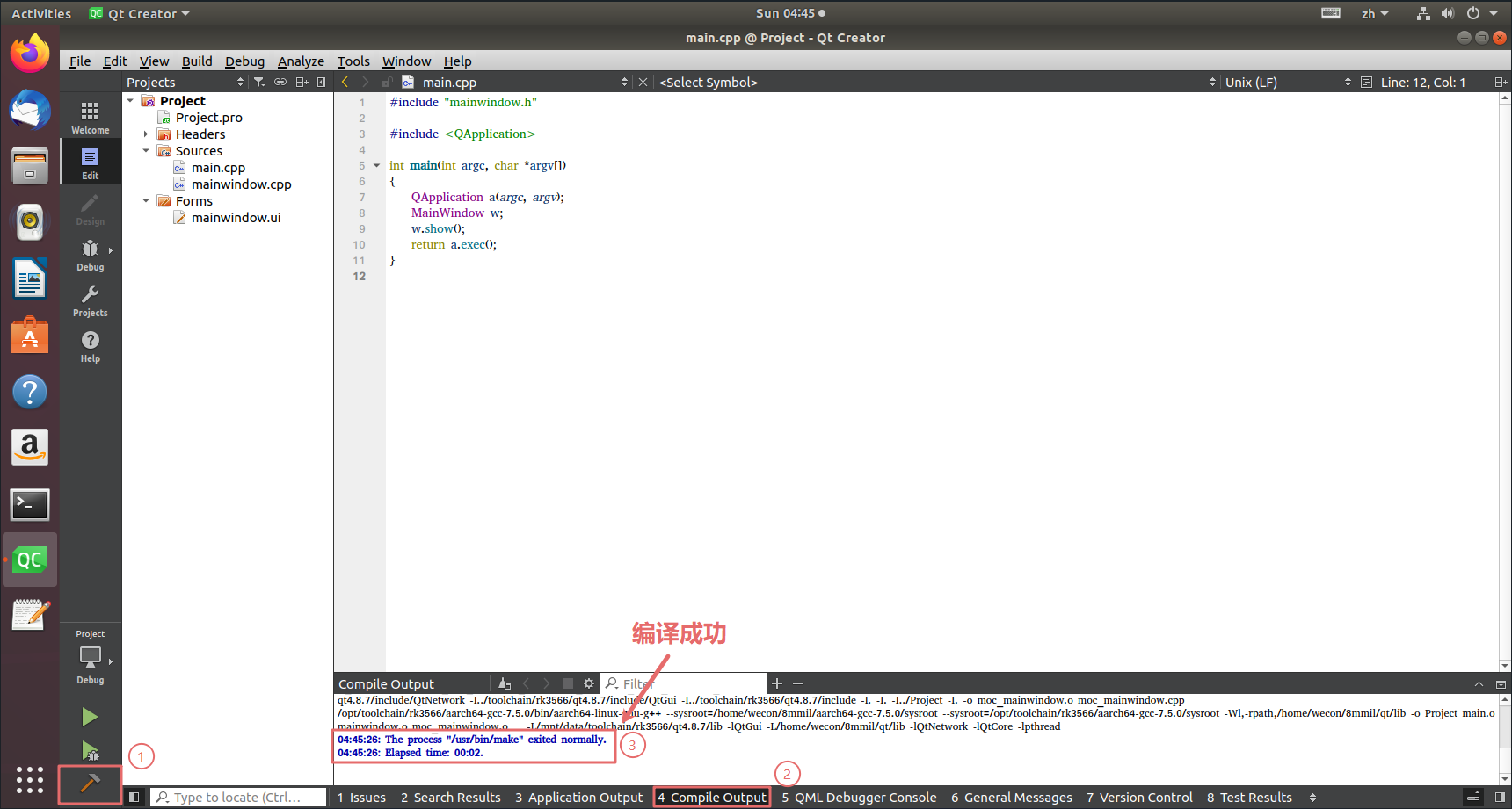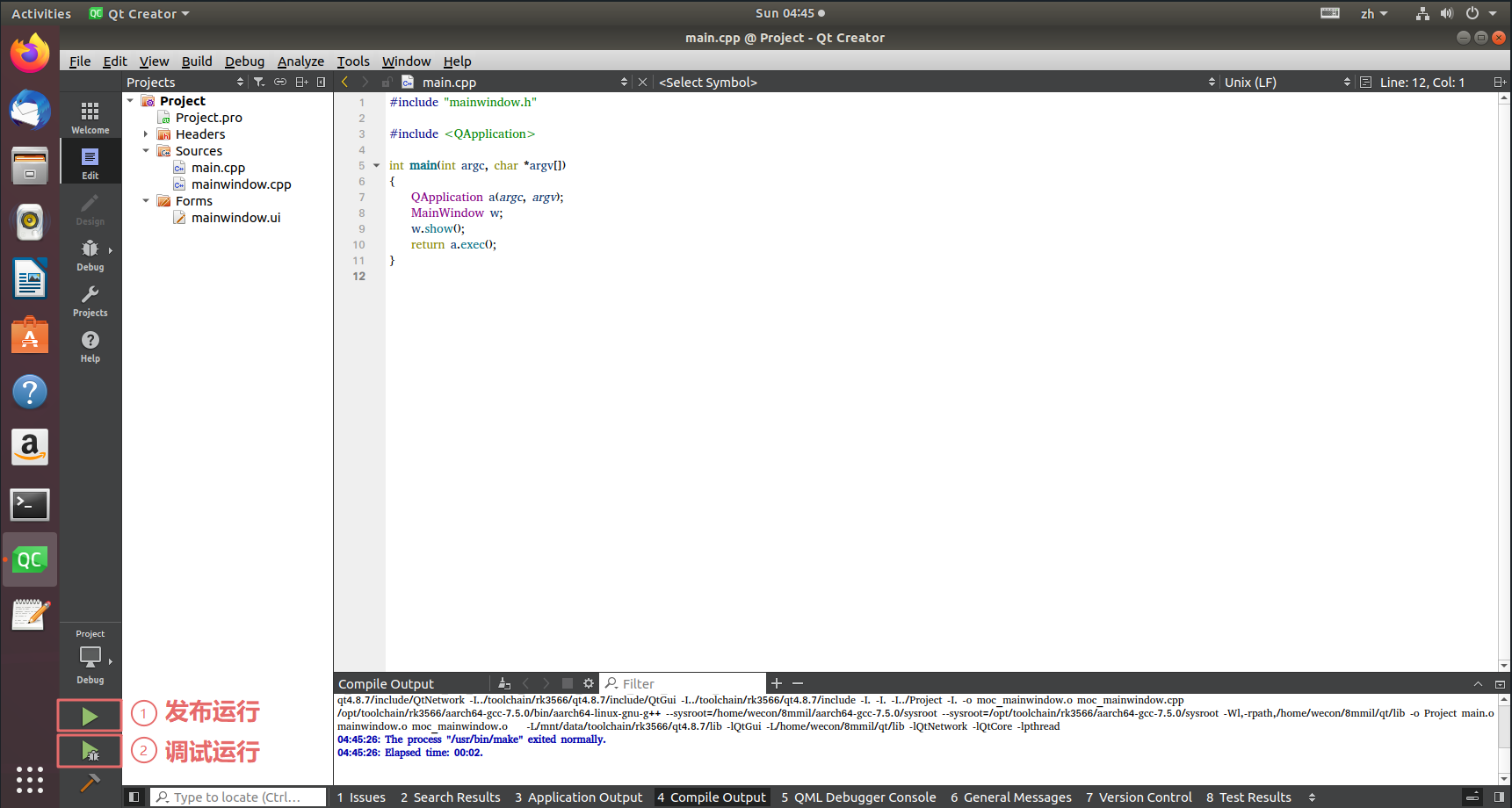 | 1 | 启动Qt Creator | - | 打开开发环境 |