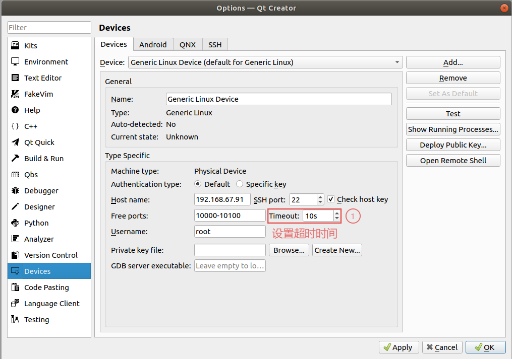 - 当出现连接速度慢导致的无法连接问题则需修改连接等待时间,最后点击Test测试,测试通讯成功即可应用保存。