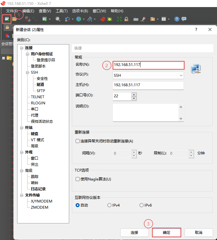 打开Xshell(这里以Xshell为例),添加会话,输入对应的触摸屏IP地址,点击确定。